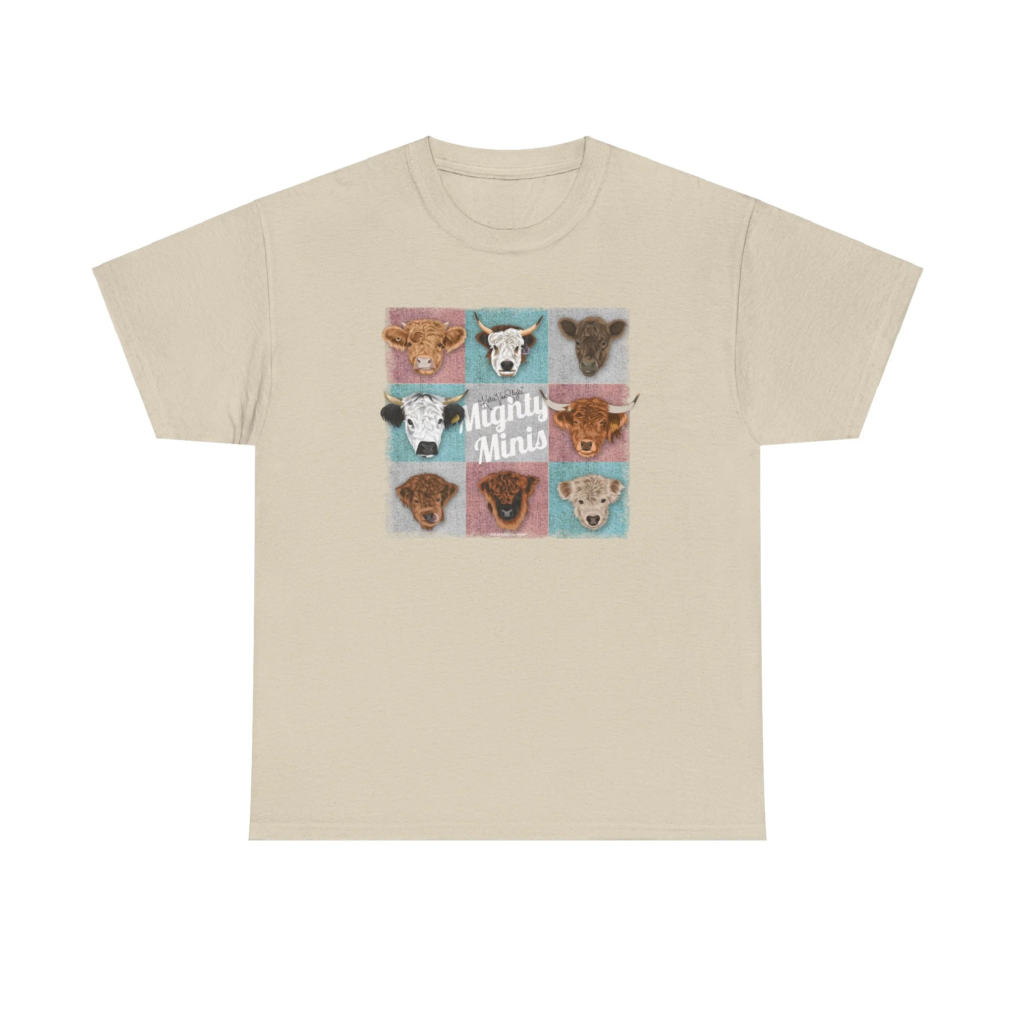 This t-shirt from Katie Van Slyke features all of the adorable mini cows. Bring a piece of Running Springs with you every where you go! The unisex heavy cotton tee is the basic staple of any wardrobe. It is the foundation upon which casual fashion grows. No side seams mean there are no itchy interruptions under the arms. The shoulders have tape for improved durability.